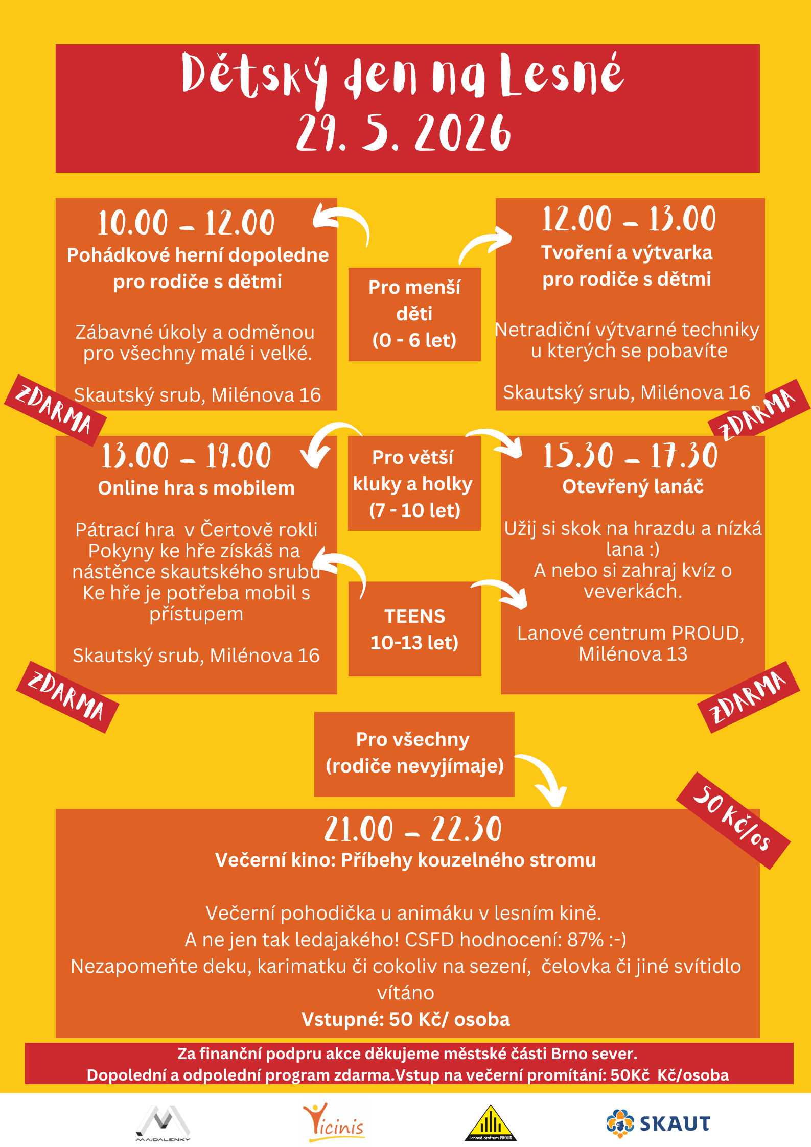 Pořadatelé: Vicinis, z. s., Majdalenky, z. s., Lanové centrum PROUD, Skaut Brno-Lesná